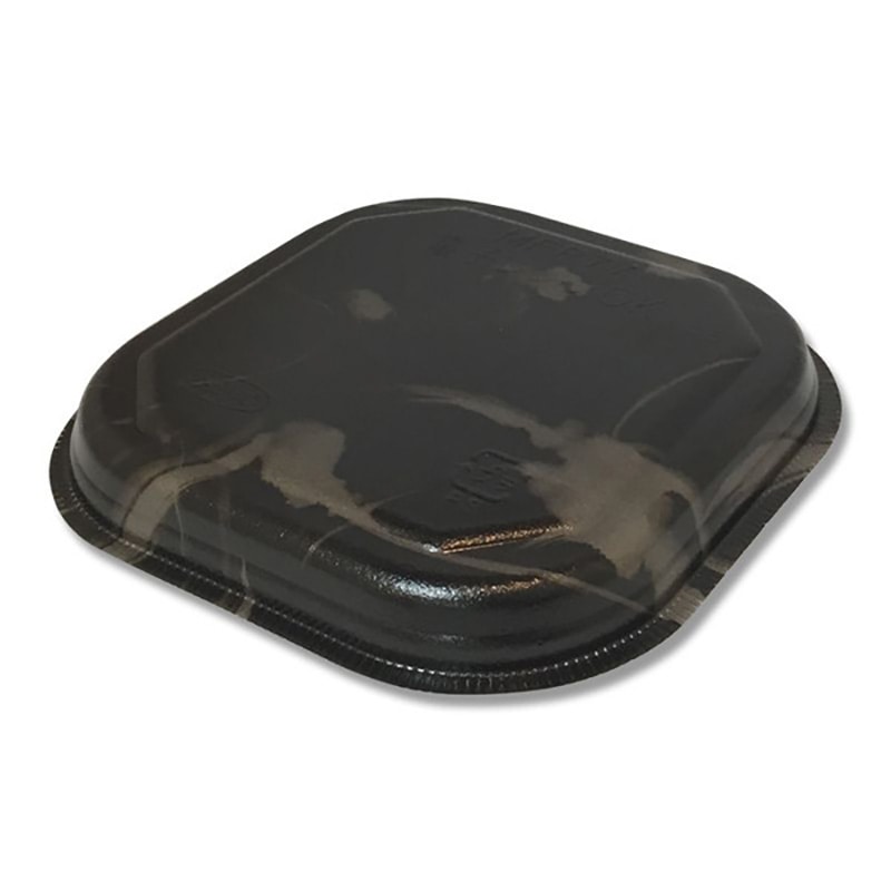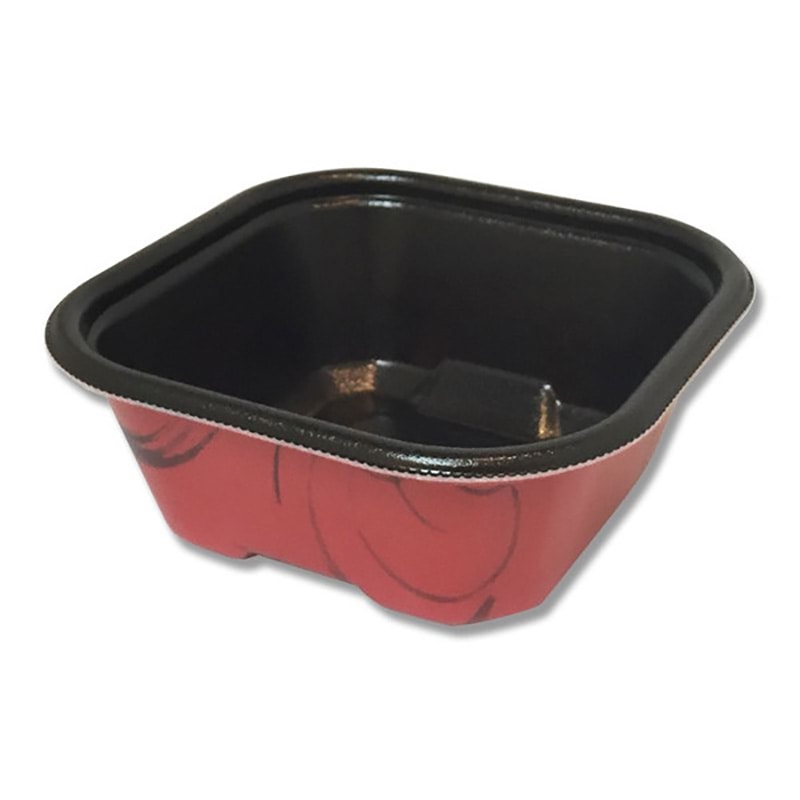 テイクアウト専用の丼容器「正角丼」の専用中皿です。汁気が多くても具材をご飯に乗せやすい深型タイプ。指が入るくぼみがあるため、本体から取り出すときにスムースです。石油資源の消費抑制とCO2の排出抑制に貢献する、植物由来のバイオポリエチレンを配合したハイブリッド容器です。●電子レンジ使用可●オーブン使用不可●耐油性あり●耐熱温度:130℃●容量:500cc●入数:50枚