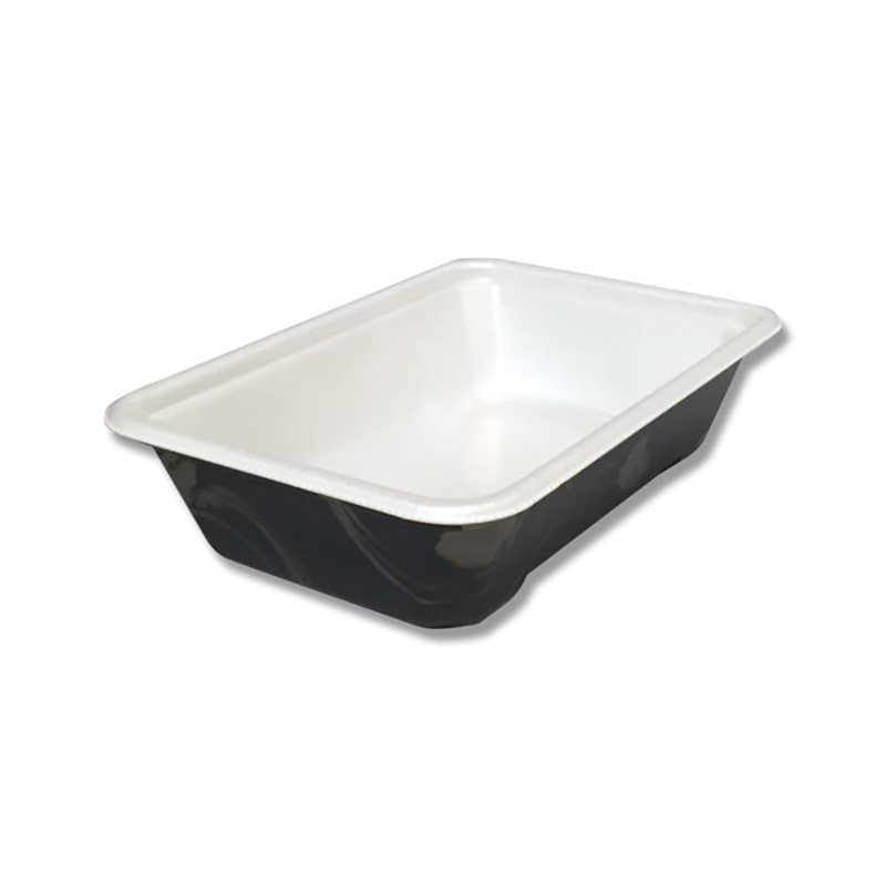 テイクアウト専用の丼容器「長角丼」の専用中皿です。汁気が多くても具材をご飯に乗せやすい深型タイプ。指が入るくぼみがあるため、本体から取り出すときにスムースです。石油資源の消費抑制とCO2の排出抑制に貢献する、植物由来のバイオポリエチレンを配合したハイブリッド容器です。●電子レンジ使用可●オーブン使用不可●耐油性あり●耐熱温度:130℃●入数:50枚