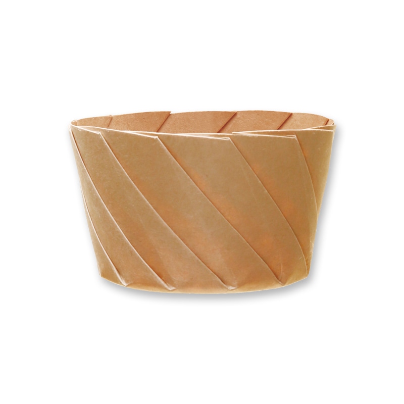 折り紙で折ったようなユニークなデザインのカップです。そのままならカップ、開けばお皿としておしゃれに使うことができます。内側は耐水・耐油性があるのであらゆる食材に対応でき、テイクアウトをはじめとした幅広い用途でお使いいただけます。また、植物のアレンジや鉢物をいれてもセンスよくディスプレイできます。オーブン対応なのでカップケーキやパンなどの焼き型としても活用していただけます。ナチュラルテイストが人気の茶色です。●容量960cc ●電子レンジ使用可 ●オーブン使用可 ●耐熱温度:180℃ ●入数:20個