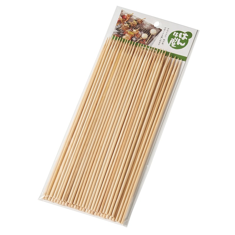 バーベキューにふさわしい、ちょっと太めの竹串です。先が丈夫で、さまざまな串料理にお使いいただけます。●入数:50本