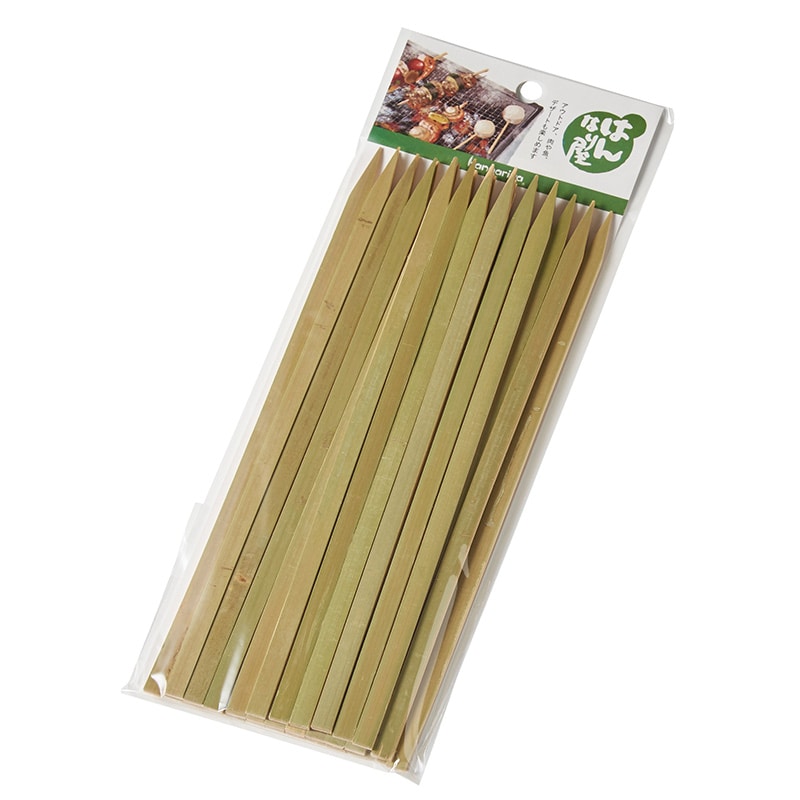 型番…M-6435●全長(mm)…450●材質…天然竹●入数…20本●角串タイプ●材料がくるくる回りにくい角型。●太くて丈夫、長くて大きめの材料に便利です。●手触り、口当たりが良い天然竹製。●梱包サイズ:70×465×32●梱包重量156g