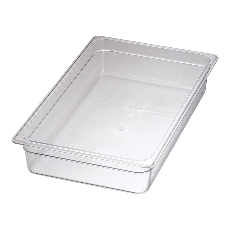 ●キャンブロカムウェア・フードパン※アメリカ※洗浄機使用可能貯蔵、運搬、そしてディスプレイ用にも使える多目的フードパンです。透明なポリカーボネイト製ですから、中身が容易に確認できます。表面はなめらかで洗いやすく、底面はキズがつきにくいように処理をほどこしております。耐熱温度は、-40度から99度までです。目盛り(LとQT):がついていますので補充も簡単に行えます。クリアー:中身が見えます。ブラック:光を通さず肉やチーズの変色を防ぎます。●メーカー品番:16CWB●サイズ表示:44927●深さ(mm):150●間口×奥行(mm):530×325●容量(cc):19500●色:ブラック