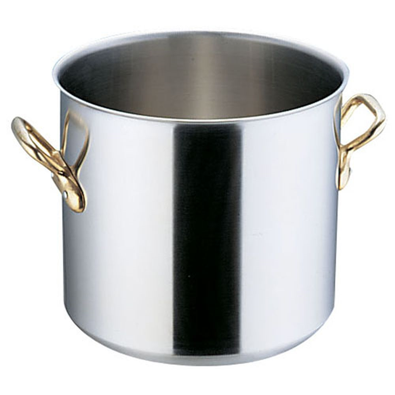 ●プロユースのために生まれてきた。電磁調理器用ステンレス鍋、スーパーデンジ。[IH対応][Q&A]●耐蝕性に優れた新素材SUS444(18クロームモリブデン鋼):を使用し、鍋底は2.3mmの単層極厚構造ですから業務用電磁調理器に最適です。●業界初の18-8ステンレスビスを用いることで耐久性を高めました。●ハンドルは真鍮製にこだわり、本場フランスの料理人がなじんだ角度、握り易さを採用し、プロユースにふさわしいグレード感です。※蓋は、スーパーデンジ鍋蓋(ANB16):の蓋を御使用ください。●サイズ表示(内径cm):30●外径×深さ(mm):315×290●容量(L):20●質量(kg):5.2●底板厚(mm):3●底径(mm):265