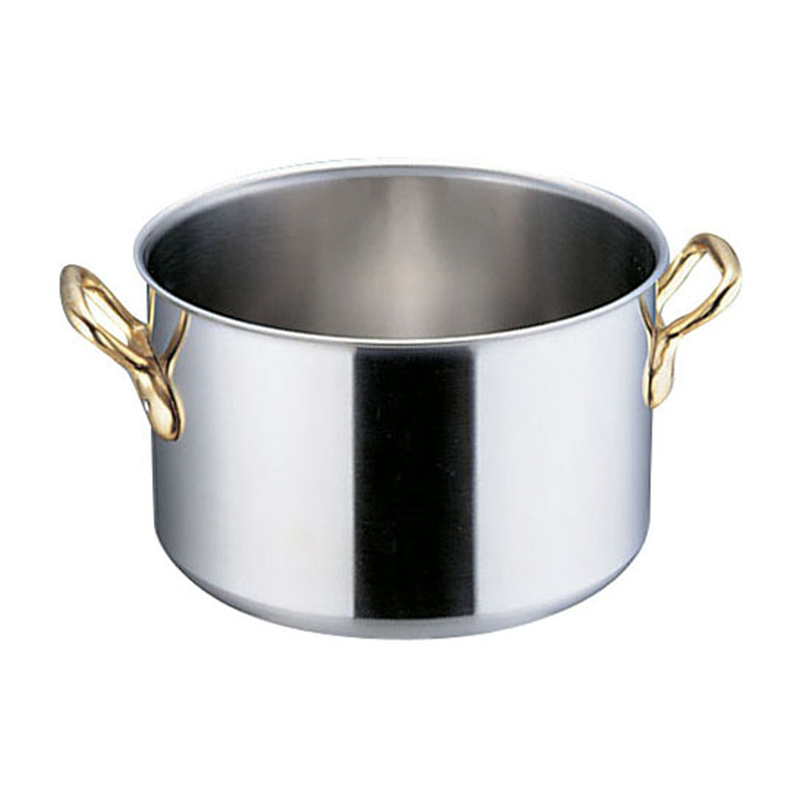 ●プロユースのために生まれてきた。電磁調理器用ステンレス鍋、スーパーデンジ。[IH対応][Q&A]●耐蝕性に優れた新素材SUS444(18クロームモリブデン鋼):を使用し、鍋底は2.3mmの単層極厚構造ですから業務用電磁調理器に最適です。●業界初の18-8ステンレスビスを用いることで耐久性を高めました。●ハンドルは真鍮製にこだわり、本場フランスの料理人がなじんだ角度、握り易さを採用し、プロユースにふさわしいグレード感です。※蓋は、スーパーデンジ鍋蓋(ANB16):の蓋を御使用ください。●サイズ表示(内径cm):24●外径×深さ(mm):251×170●容量(L):7.5●質量(kg):2.5●底板厚(mm):3●底径(mm):220