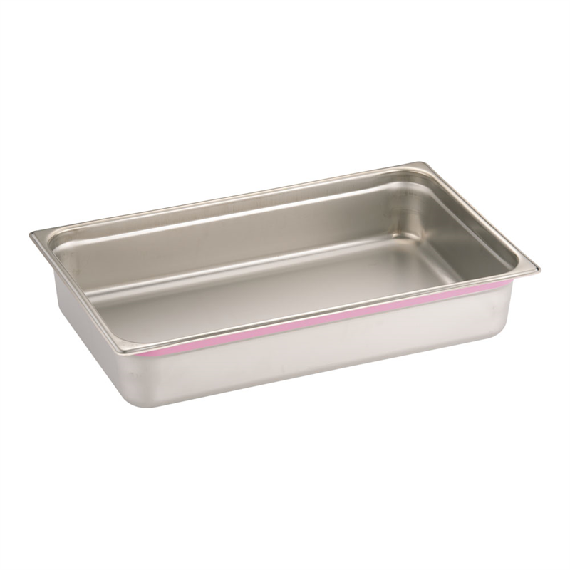 ●--別途表組みエクセルであります--カラーライン部:シリコン樹脂塗装塗装部●耐熱温度:300度●塗装部は加熱時での光沢低下少なく、耐変色性に優れています。●食材別の色分け管理ができます。※上記カラーのほか、別注で--色玉--ホワイト、--色玉--オレンジ、--色玉--アズキ、--色玉--ブラックができます。□受□納●深さ(mm):65●カラー:ピンク●間口×奥行×深さ(mm)(外寸):530×325×65●容量(L):8.7