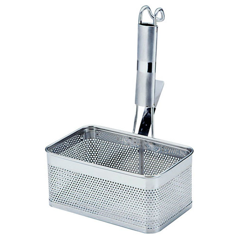 ●ゆで料理などにとても便利です。●足付だから転がりません。●材質:18-8ステンレス●サイズ:外寸220×全長395×高さ95mm●網目:16メッシュ●コード番号:013398003●こちらの商品は事業者様向け商品です。