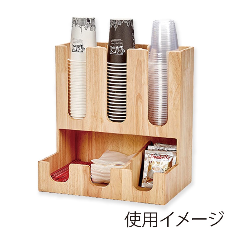木目を生かした高級感漂うウッドディスペンサーです。紙コップやフタなど、カフェ経営に必要な備品をおしゃれに効率よく収納することができます。インテリア効果も高く店舗やオフィスでの仕様をお勧めいたします。ラバーウッド材は一般的な木材とは異なり、強度が高く、傷が付きにくい商品です。 この商品は木材固有の柄ですのでイメージと多少変わる場合がございます、予めご了承ください。