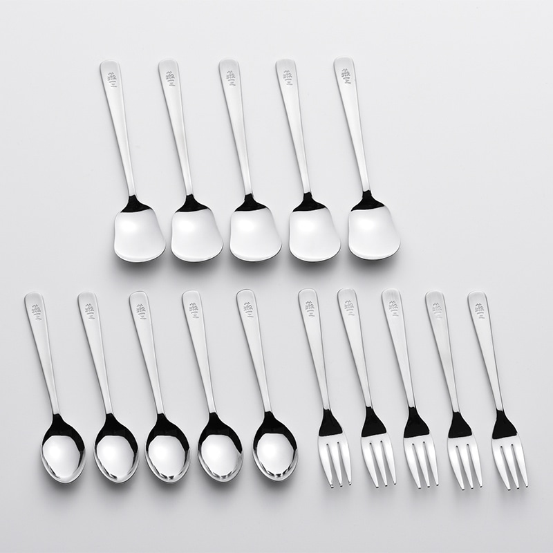 金属加工の街として有名な新潟県燕三条地区で製造された長く使えるシンプルなカトラリーです。コーヒースプーン×5、ヒメフォーク×5、角アイススプーン×5の15点セット。持ち手は上質なサテン仕上げ。すくう部分は口当たり滑らかなミラー仕上げ。普段使いから来客向けに揃えておきたいセットです。●角アイススプーン:全長125×幅29mm●重量:コーヒースプーン14g/ヒメフォーク12g/角アイススプーン16g