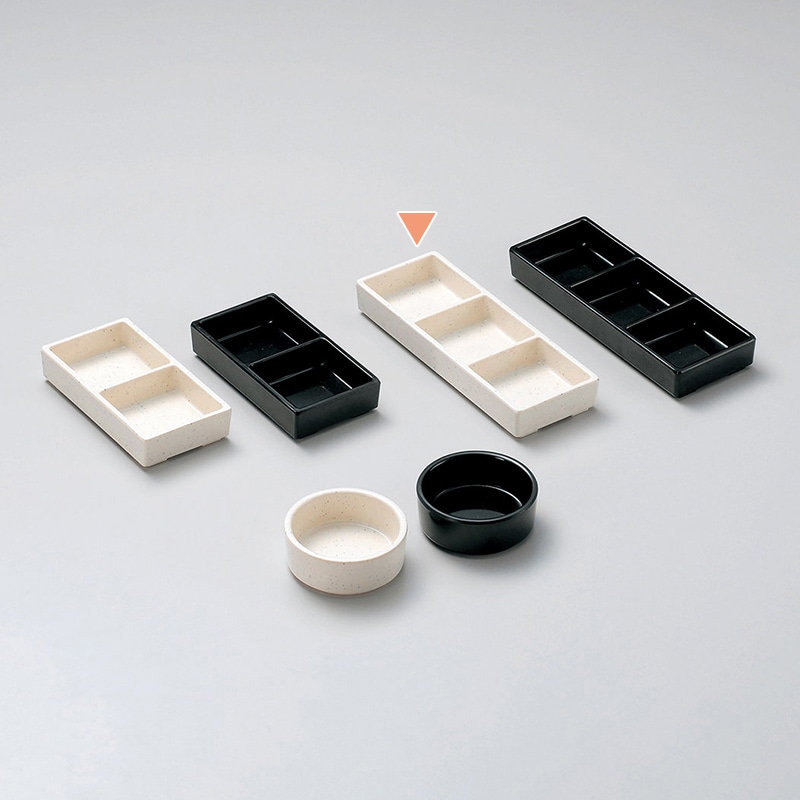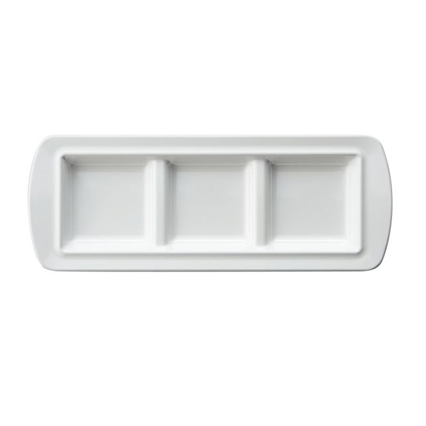 シンプルな3ツ仕切り皿。前菜皿にぴったり。別売の小鉢「イチコバチCH-610」、「ニコバチCH-310」、「8cmネジコバチCH-620」と組み合わせて使用出来ます。