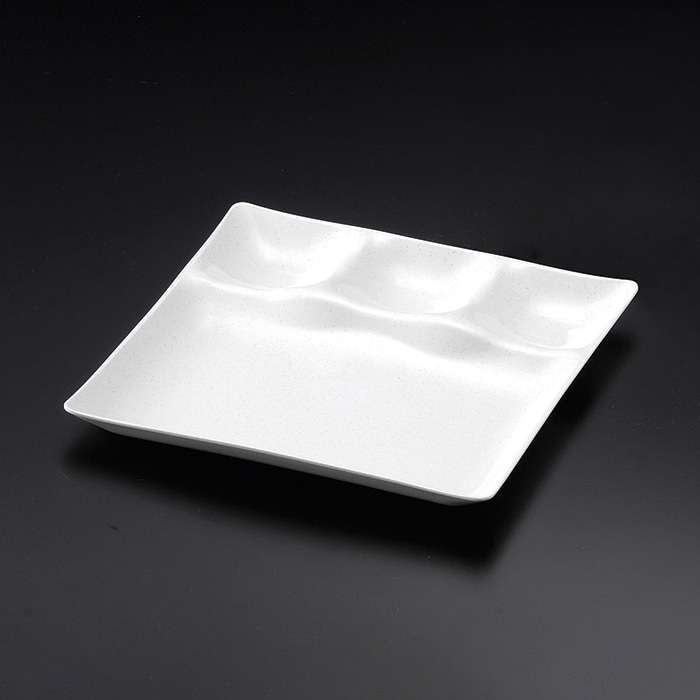 福井クラフト メラミン仕切皿 24.3cm 雅四方上三ツ切鉢 白グロス 51025520 1個(ご注文単位1個)【直送品】