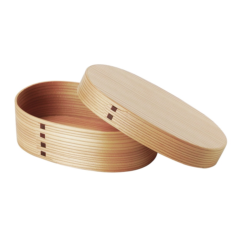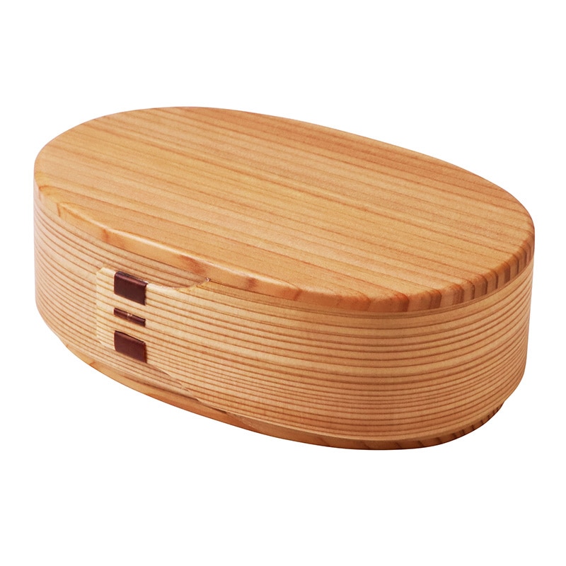 伝統製法によりつくり上げた、曲げわっぱの弁当箱。深いかぶせタイプの蓋で高級感のある仕上がり。木は熱伝導性が低いため、周りからの影響を受けにくい特長。●ウレタン塗装●容量:約350ml