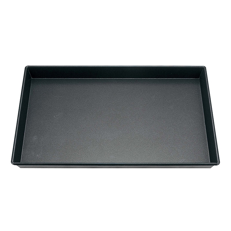 ●熱伝導率の良いアルミ製シートパン。板厚:1.5mm。●外寸:縦450×横330×高さ25mm