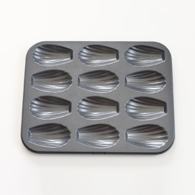 ●型の1個あたりのサイズ:上径72×底径41×H14mm 一度に12個焼くことが出来るマドレーヌ型です。本品はスチールにシリコン樹脂加工しているため、熱伝導に優れ、型離れが良いです。初めてご使用する際は、食器用洗剤を付けたスポンジなどで洗って下さい 型にバターや離型油を塗ってから、生地を流し入れ焼成して下さい・空焚き、直火は避けオーブンでご使用下さい。(電子レンジはご使用頂けません。)・敷紙を使用するか内側にバター等の油脂をまんべんなく塗って頂くと、型から抜けやすくなります・コーヒー、お茶類等のタンニンを含むと、鉄イオンとタンニンが反応し生地に黒い斑点が付着する場合があります。敷紙をご使用下さい。