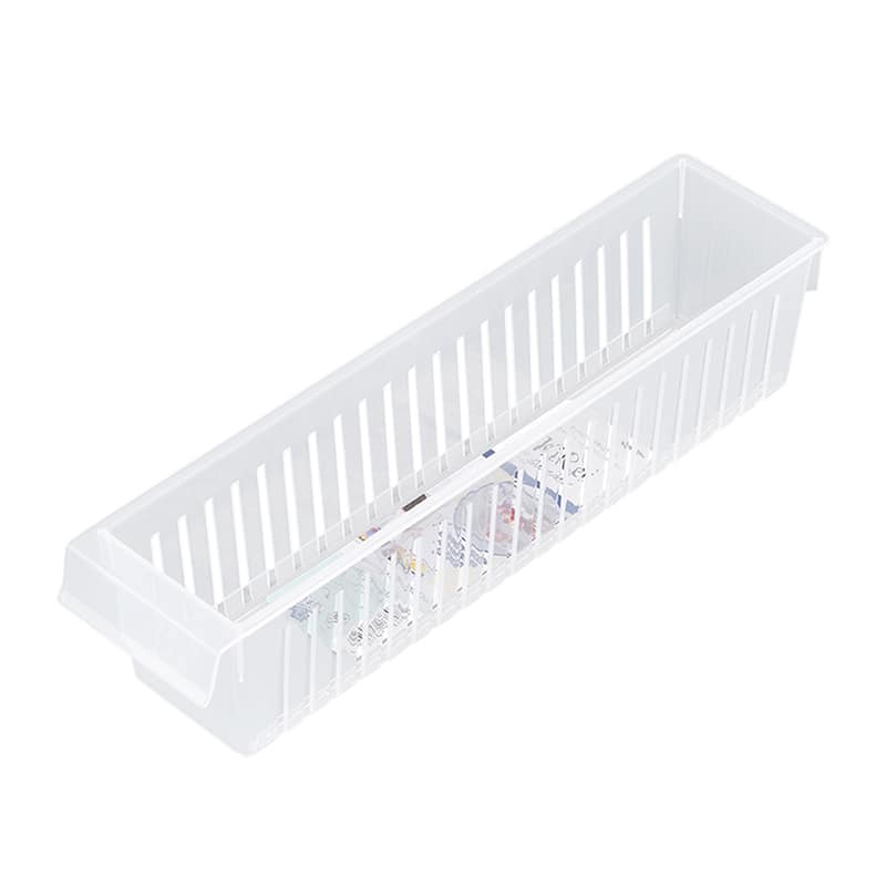 買い置き食品のパッケージや容器をタイプ別に収納できるノーマルタイプのストッカーです。冷蔵庫内の収納を見やすくします。形や大きさがバラバラな買い置き食品の収納、作り置きおかずが入った食器や保存容器にの収納に。