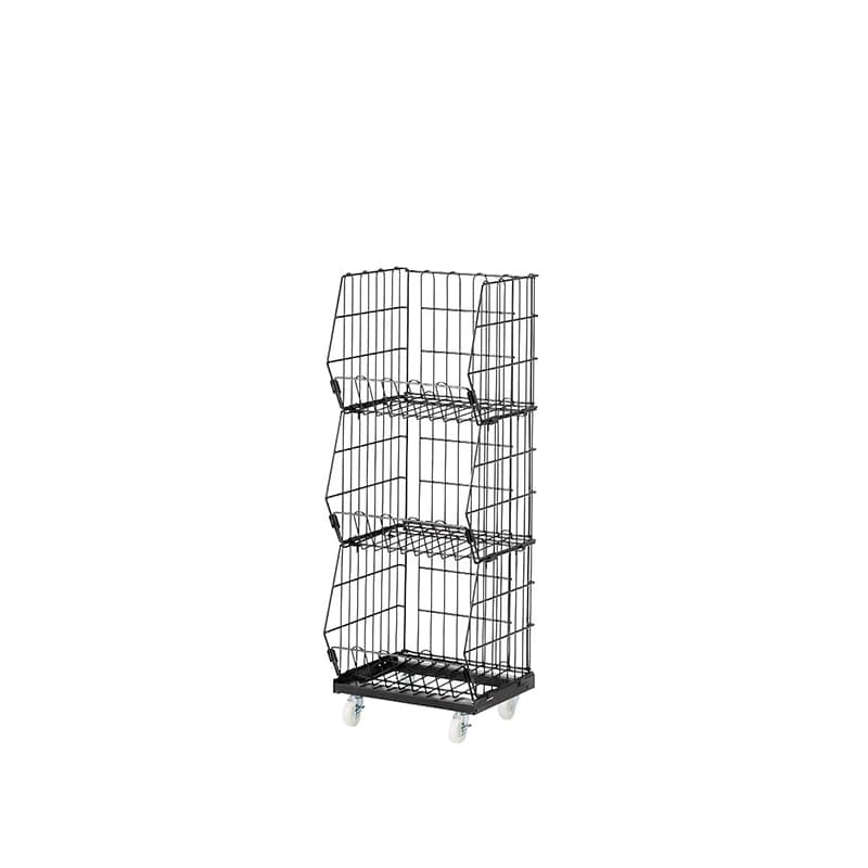 ストア・エキスプレス ジャンブルバスケット 直径7.5cmキャスター付 W54.4cm 3段 黒 61-653-43-1 1台(ご注文単位1台)【直送品】
