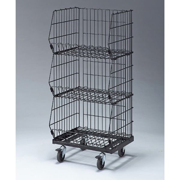 ストア・エキスプレス ジャンブルバスケット 直径7.5cmキャスター付 W86.4cm 4段 黒 61-653-45-2 1台(ご注文単位1台)【直送品】