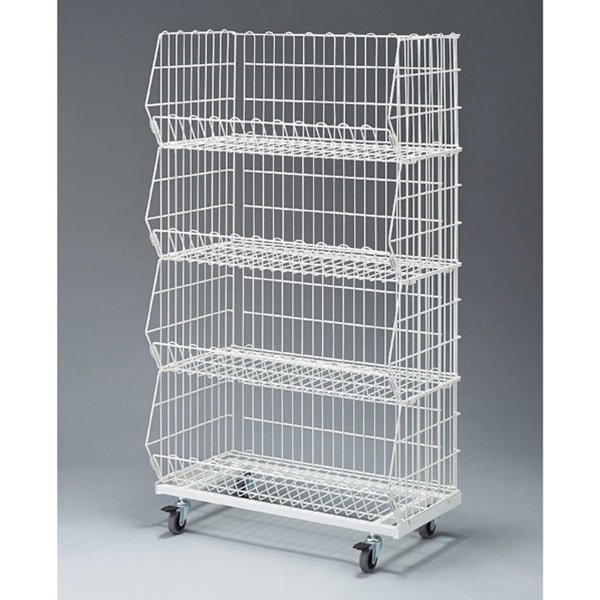 ストア・エキスプレス 傾斜ジャンブルバスケット W90cm 4段 ホワイト 61-797-66-1 1台(ご注文単位1台)【直送品】