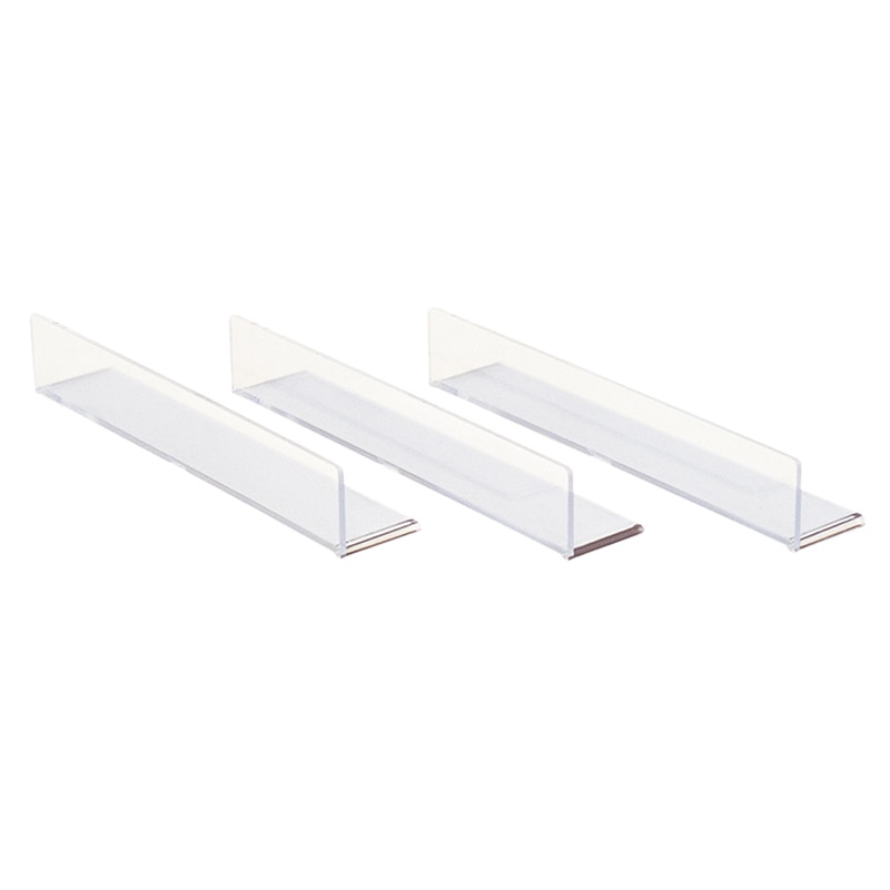 仕切板の業務用商品をお安い価格でお求めいただける通販ページです。透明の樹脂素材でできた仕切板はお店の商品陳列棚の仕切りとしてご使用いただけます。小さめサイズの雑貨や文具などを扱うお店におすすめなほか、パンフレットやカタログなど別のものと混ざってしまっては困るものの仕切りとしても便利です。ディバイダーはお店の商品陳列棚や倉庫棚の仕切やストッパーとしてご使用ください。黒とアイボリーからお店のテイストに合わせてお選びいただけます。