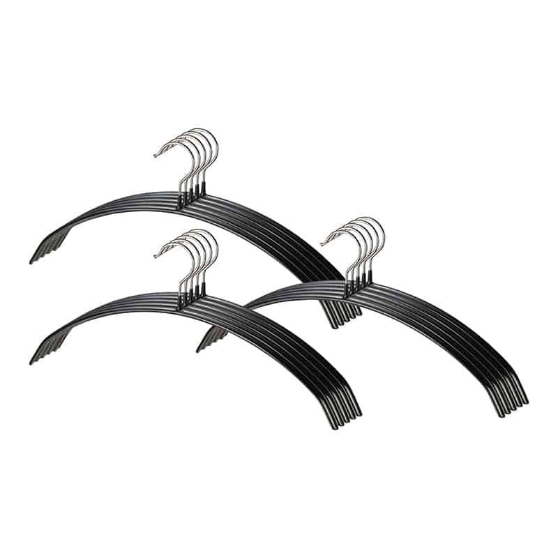 ビニールコーティングが施された滑り落ちにくいハンガー。するすると滑るブラウスや、華奢な作りのキャミソールも、衣類がハンガーから落ちにくくなっています。丸みを帯びた形状で、セーターなど柔らかな素材も肩が出にくい。シンプルな形状なのでクローゼットの中がかさばらず、すっきりと収納できます。●5本組