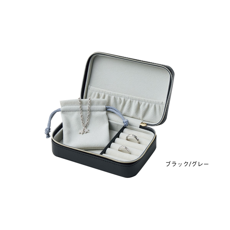 外箱:かぶせ式。大切なジュエリーを見やすく収納してくれるジュエリーケースです。合皮レザー・マットな高級感ある質感がポイントで、リングやイヤリングなど様々なジュエリーが収納可能です。優しいスエード調なので、ジュエリーをしっかり保護してくれます。