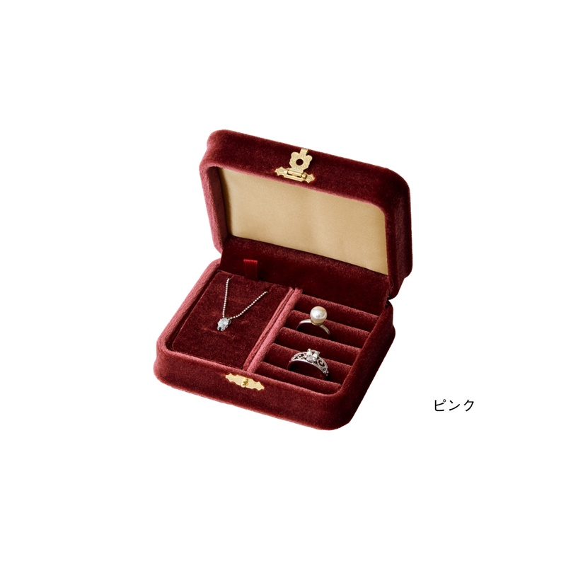 外箱:かぶせ式。大切なジュエリーを見やすく、そして美しく収納してくれるジュエリーケースです。リング、イヤリング、ペンダントが収納可能です。こちらのジュエリーケースは、べロアで出来ています。美しい光沢のある質感もポイント。ジュエリーを魅力的に演出したい方へ。高級感のあるべロアの内装と同じくべロアの外装で、あなたのジュエリーの必須アイテムになります。優しいべロアにより、ジュエリーを保護し、安心して収納することができます。