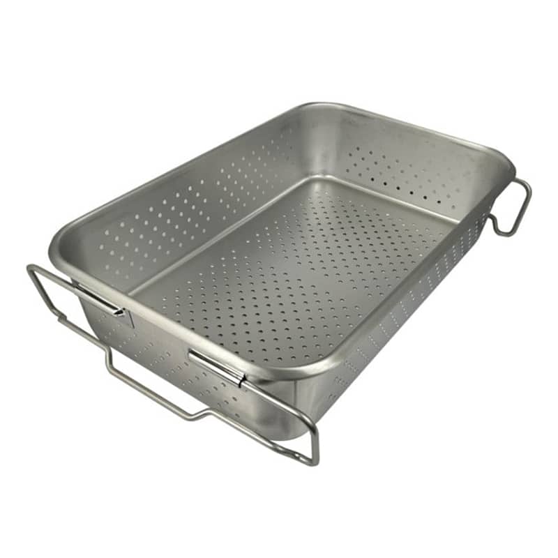 食品工場などの大量調理施設で使われている穴明きバットです。食材の水切り、運搬、保管に最適です。耐久性と耐食性に優れたステンレス製です。ハンドルを内側に倒すことで食材を入れたまま積み重ねができます。バットの保管時はハンドルを外側に倒し積み重ねができます。SH-6038シリーズ同士であれば異なる深さでも積み重ねができます。別売の蓋(SH-6038C)を使用し、蓋をした状態で積み重ねもできます。ハンドル金具は水抜き穴(φ0.8mm)付で水が溜まりにくい構造です。●穴径:φ6mm●容量:約28L●板厚:0.8mm●重量:約3200g