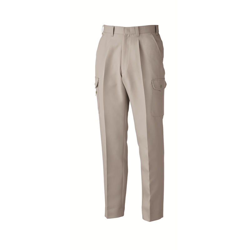 火に強く、丈夫なツイル生地を使用したメンズスラックス。メンズカーゴパンツ。右脇は大容量のマルチカーゴポケット。内側にコインポケット付き。カーゴポケットは左右でデザインが異なります。