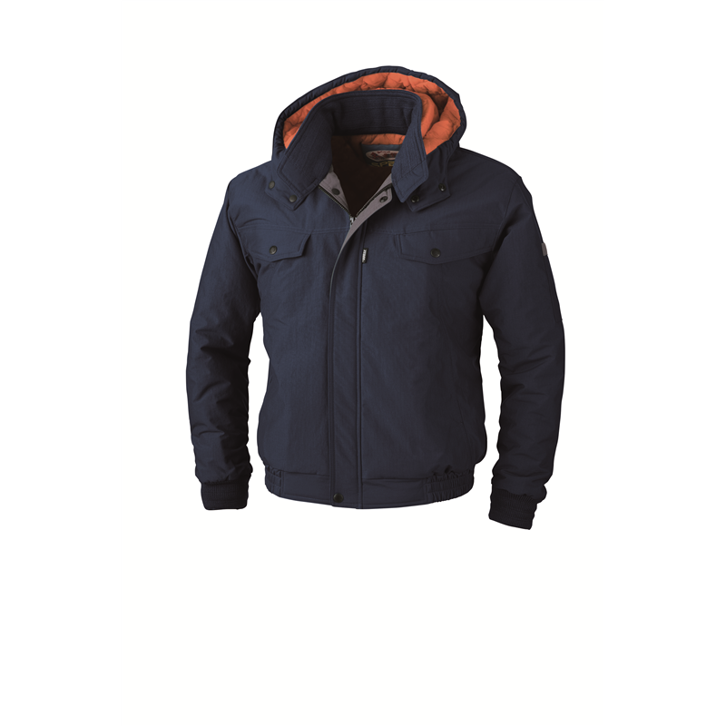 柔らかい風合いの生地に撥水加工を施したベーシックタイプの防寒ブルゾン。取り外し可能なフード付き。内ポケット付き。両胸ファスナー付きポケット。左袖ペン差し付き。●胸ポケット:巾14×深さ16.5cm