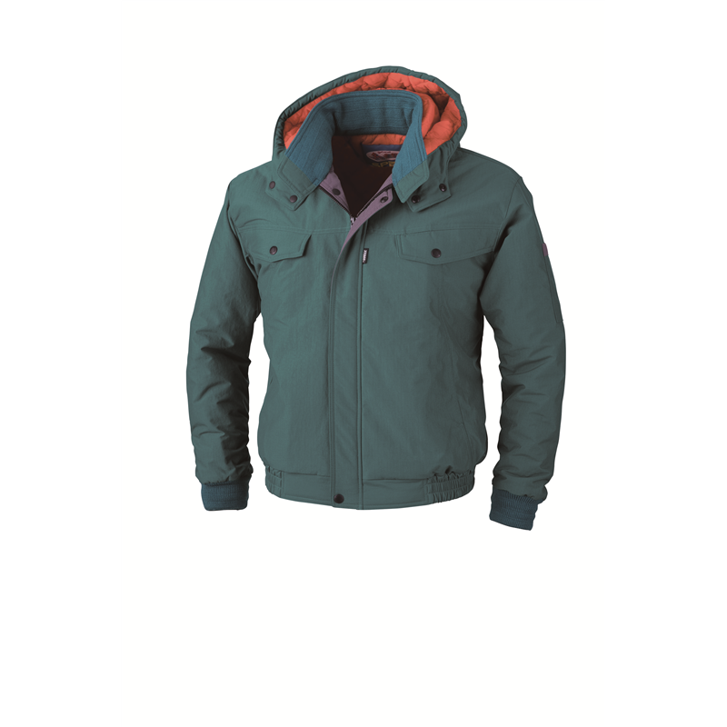 急な雨も安心の、超撥水&蓄熱機能搭載の軽防寒ブルゾン。ファスナー式インフード仕様。左側内ポケット付き。袖裏タフタ、背当ての蓄熱保温素材と、裏地のトリコット起毛素材で保温性抜群。●樹脂ファスナー