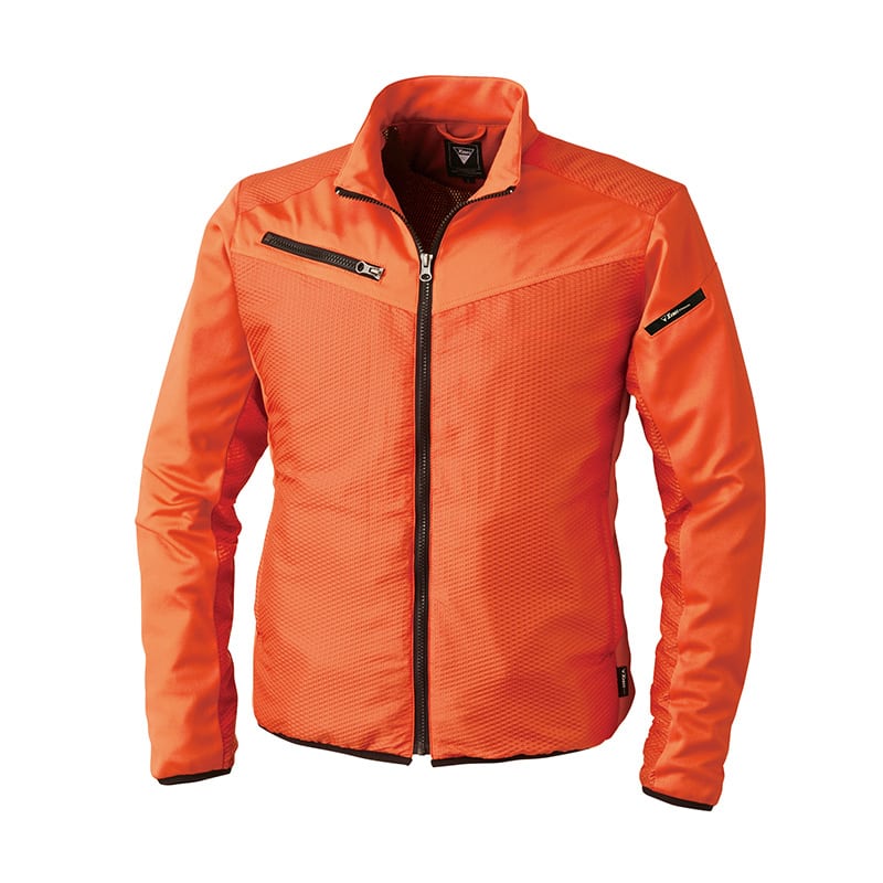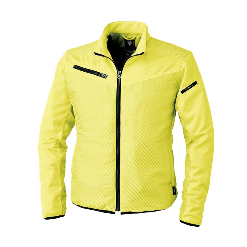 ボコボコした素材感が新鮮なディンプル素材を使用した軽防寒ブルゾン。ラミネートを施したニット素材で防風性も高い。裏地にはトリコット起毛+蓄熱保温素材で軽くて保温性のあるブルゾンです。袖、脇はラミネートストレッチ素材で動きやすいです。左内ポケット、袖ペン差し付き。●裏素材:蓄熱メッシュ(ポリエステル100%)●右胸ポケット:巾12.5×深さ17cm●樹脂ファスナー