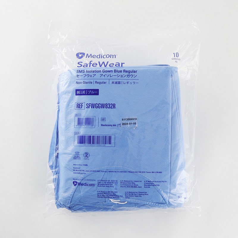 メディコムジャパン セーフウェア アイソレーションガウン ブルー 10枚入 SFWGGW832R 1パック(ご注文単位10パック)【直送品】