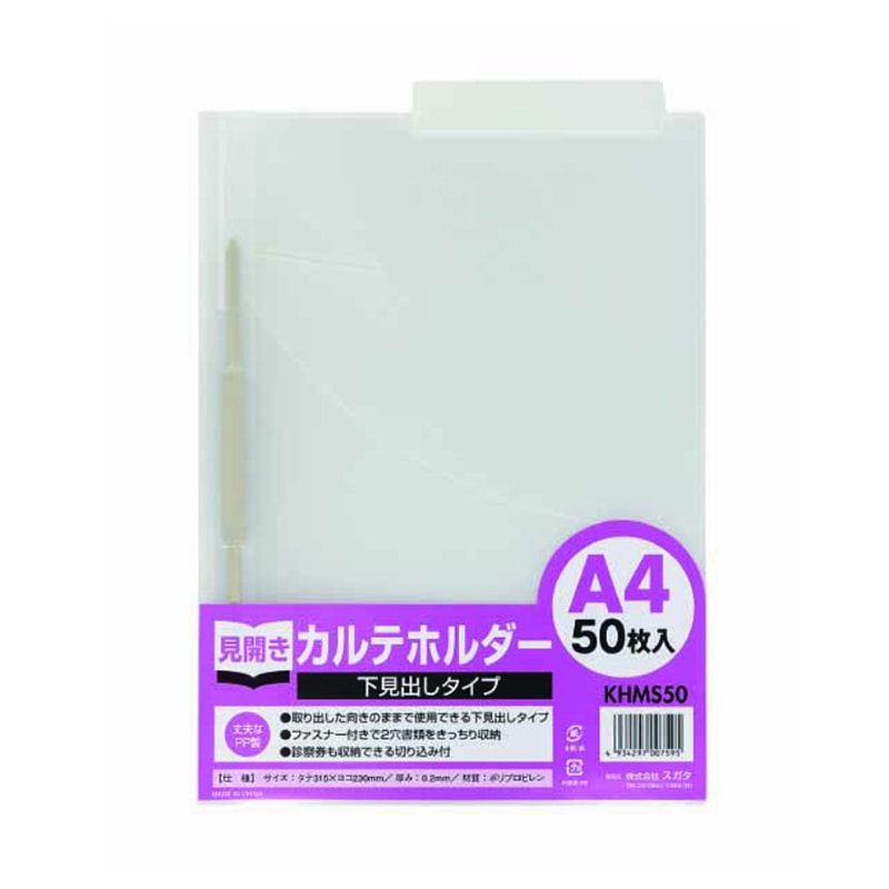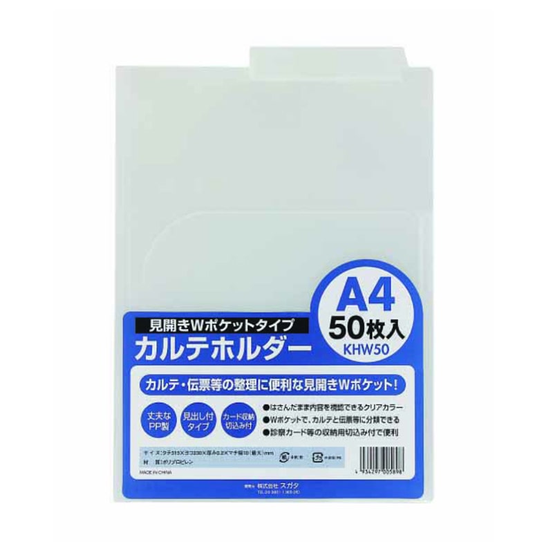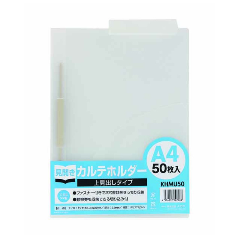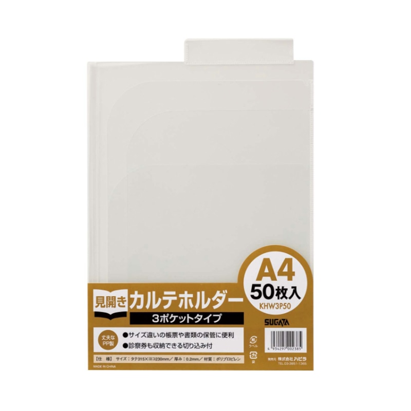 ハピラ 見開きカルテホルダー A4 3ポケットタイプ KHW3P50 50枚/1パック(ご注文単位2パック)【直送品】