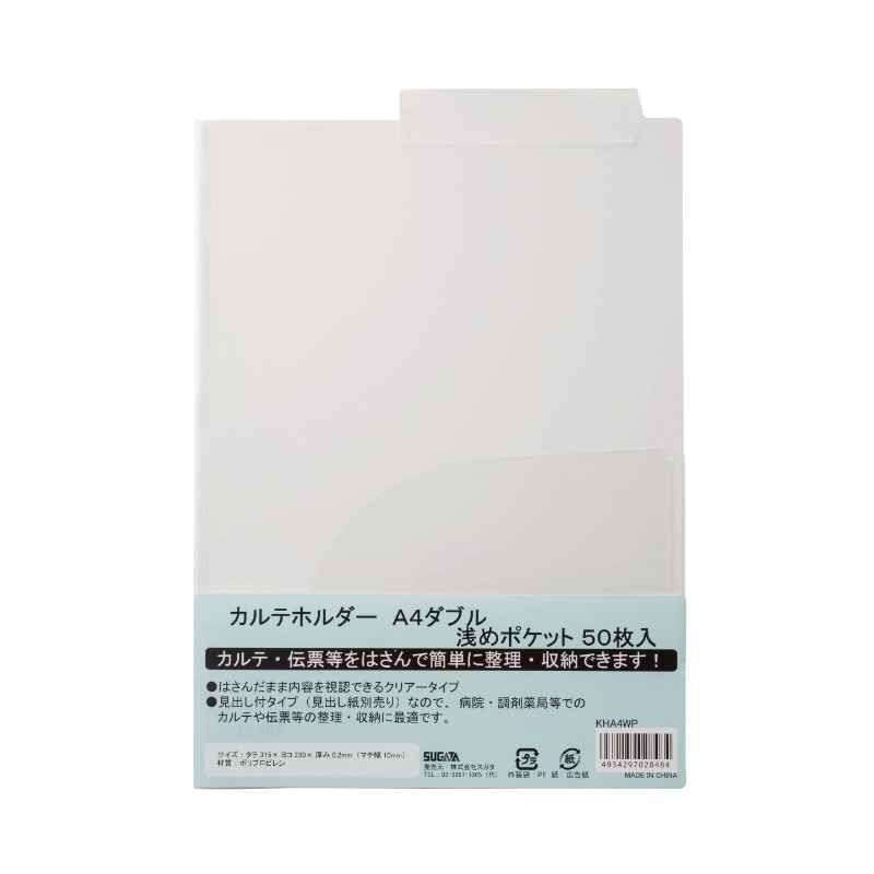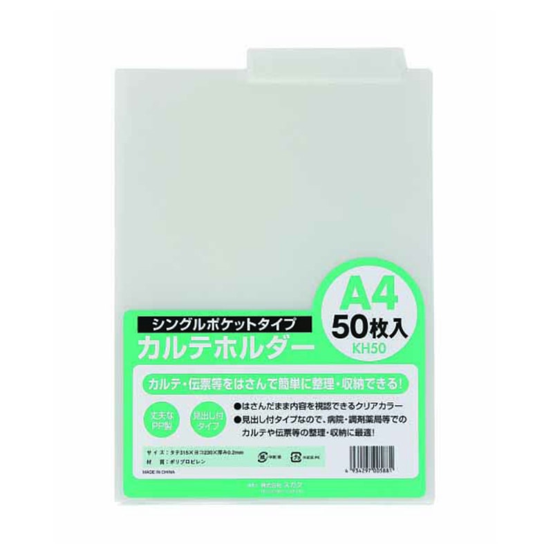 ハピラ 見開きカルテホルダー A4 ダブルファスナータイプ KHWF50 50枚/1パック(ご注文単位2パック)【直送品】