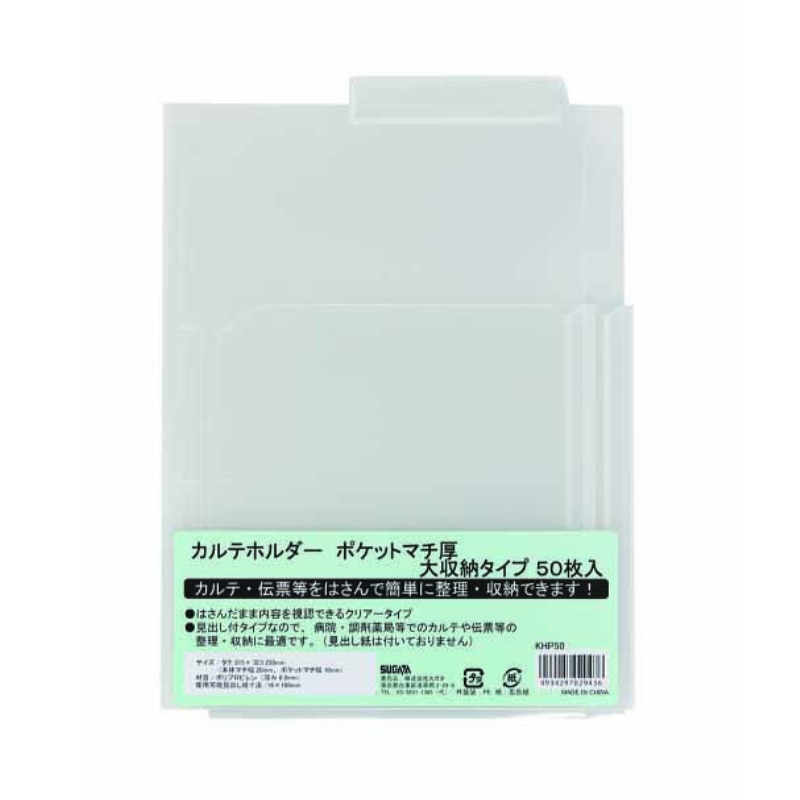 各種帳票の保管に便利なダブル3ポケット付きのカルテホルダーです。サイズ違いの帳票や書類の保管に便利。診察券が収納できる切り込み付き。見出し付き。見出し紙は別売です。●使用可能見出し紙寸法18×108mm●入数:50枚