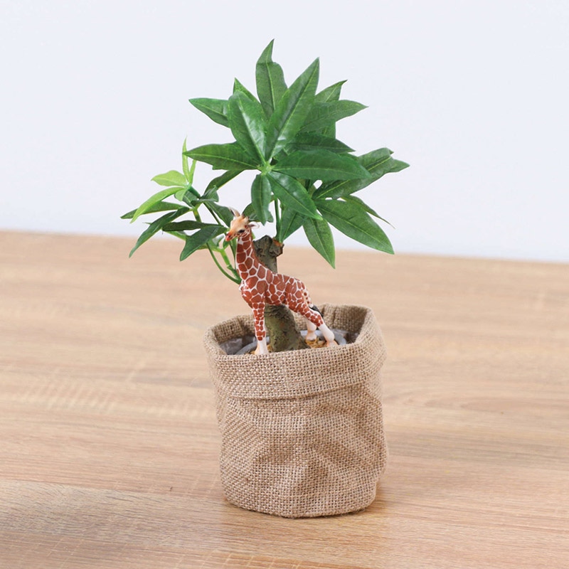 インテリアとして人気のフェイクグリーンにフィギュアと鉢カバーのセットです。室内装飾用です。屋外や野外での使用は色あせや破損等、劣化を早めますのでご注意ください。●動物のサイズ:H6×W3.8×D4cm