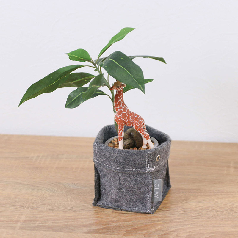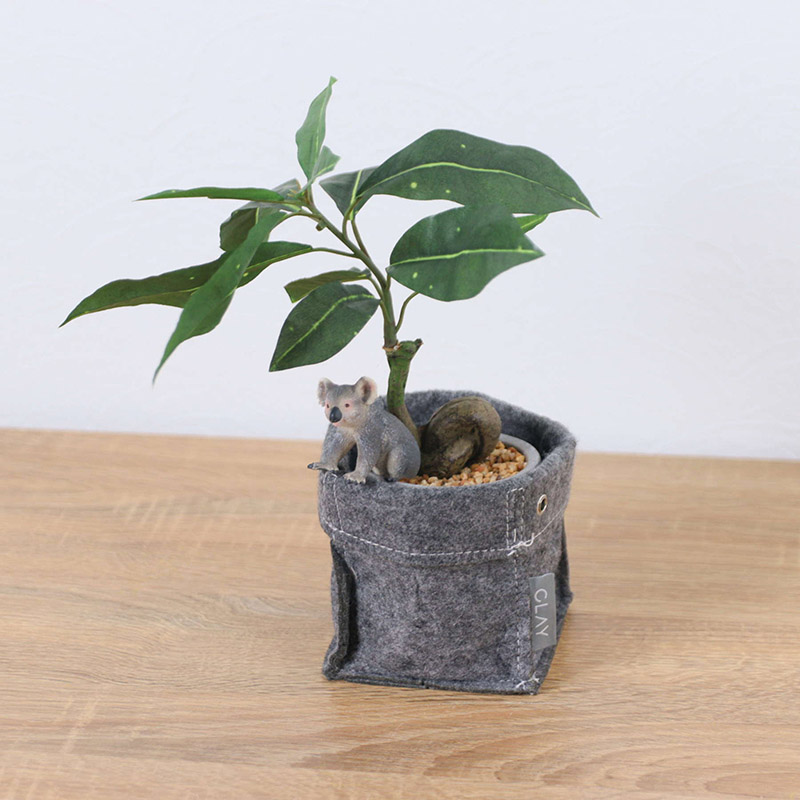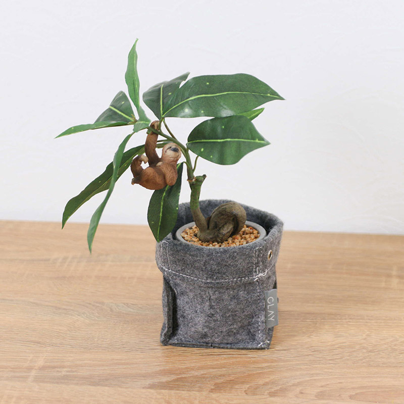 インテリアとして人気のフェイクグリーンにフィギュアと鉢カバーのセットです。室内装飾用です。屋外や野外での使用は色あせや破損等、劣化を早めますのでご注意ください。●動物のサイズ:D4.8×W4.5×D3.7cm