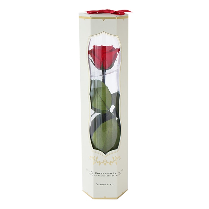 モノ・インターナショナル verdissimo プリザーブドフラワー 55711 ミニベルローズ レッド 白箱リボン 1本(ご注文単位1本)【直送品】