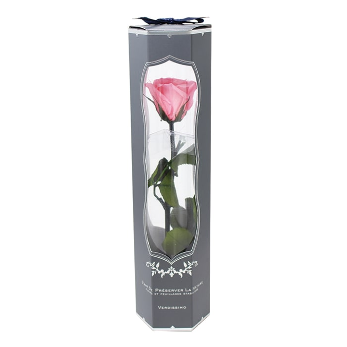 モノ・インターナショナル verdissimo プリザーブドフラワー 55827 ミニベルローズ ドルチェピンク グレー箱リボン 1本(ご注文単位1本)【直送品】