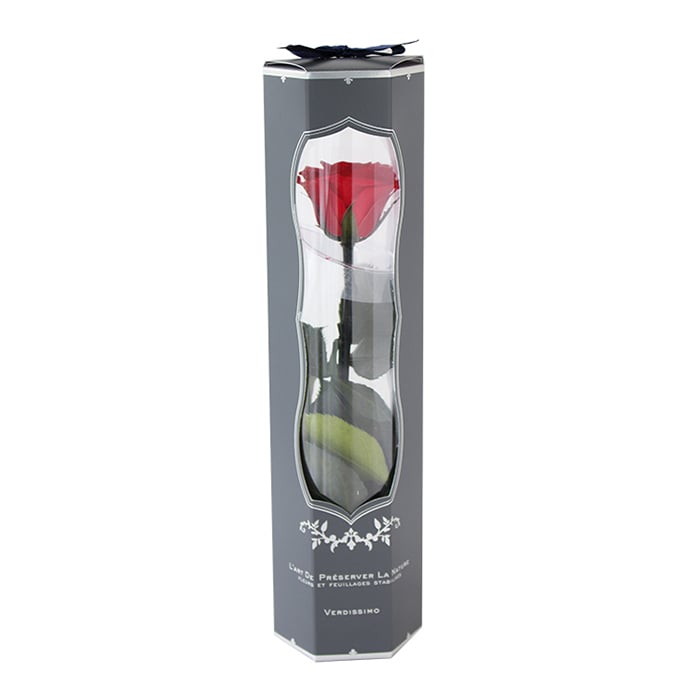 モノ・インターナショナル verdissimo プリザーブドフラワー 55811 ミニベルローズ レッド グレー箱リボン 1本(ご注文単位1本)【直送品】