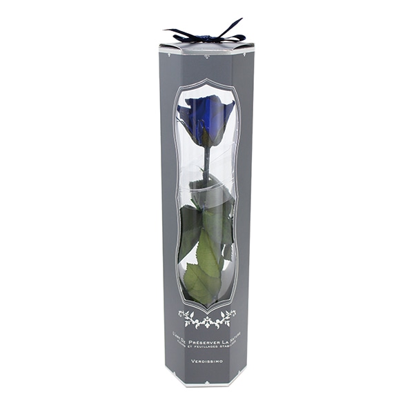 モノ・インターナショナル verdissimo プリザーブドフラワー 55818 ミニベルローズ ロイヤルブルー グレー箱リボン 1本(ご注文単位1本)【直送品】