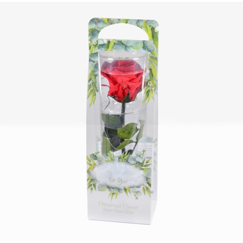 フロールエバー プリザーブドフラワー ショートステムローズ メッセージユーカリ チェリーレッド FL072021-05 1本(ご注文単位1本)【直送品】