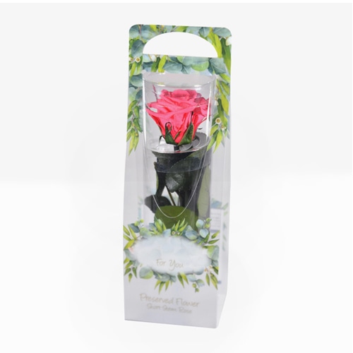 フロールエバー プリザーブドフラワー ショートステムローズ メッセージユーカリ ホットピンク FL072021-08 1本(ご注文単位1本)【直送品】