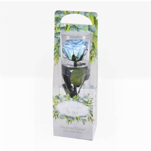 フロールエバー プリザーブドフラワー ショートステムローズ メッセージユーカリ パウダブルー FL072021-13 1本(ご注文単位1本)【直送品】