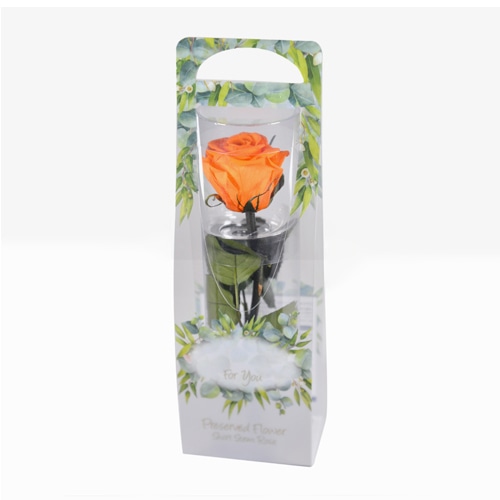 フロールエバー プリザーブドフラワー ショートステムローズ メッセージユーカリ タンジェリンオレンジ FL072021-29 1本(ご注文単位1本)【直送品】