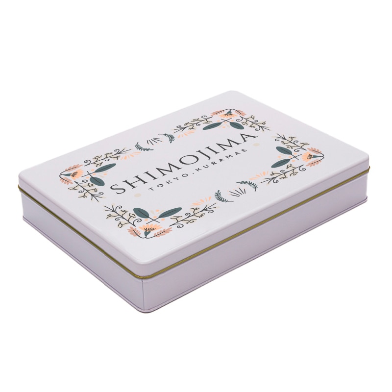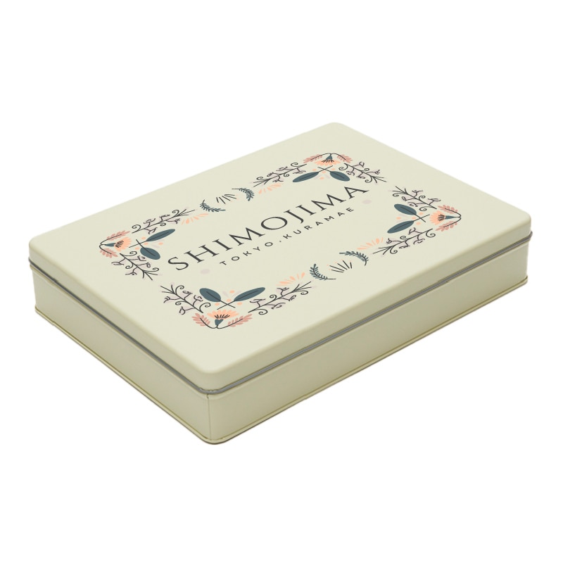 天面にフルカラー4色印刷(+下白印刷)をしてオリジナルデザインの缶を作成●食品は缶ケースに直接触れないようにしてください●製造工程上、缶ケースには小さな擦れ傷がついてしまったり、コーナーカール部などで素材が剥けてしまう場合がございますので予めご了承ください●印刷の特性上、印刷色は出たなりの印刷となりますのでご了承ください●印刷の仕上がりを確認したい場合は色校正の対応も可能です(別途費用が掛かります)