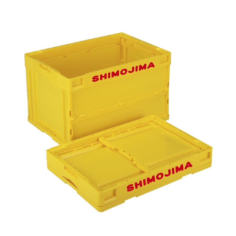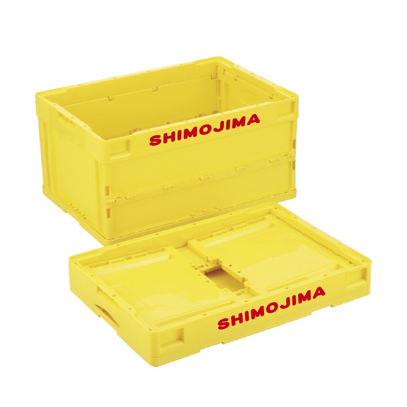 折りコンの長側面口枠(両面)に1色印刷●印刷色:黒もしくは白●蓋なし●容量:50リットル●有効内寸:493×335×305mm●圧縮荷重:7740N●オールプラスチック製●積み重ね可能