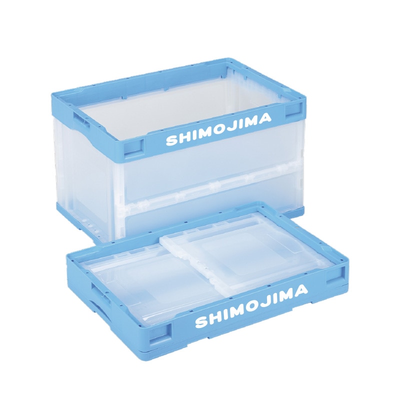折りコンの長側面口枠(両面)に1色印刷●印刷色:黒もしくは白●蓋付き●容量:59リットル●有効内寸:493×335×359mm●圧縮荷重:4510N●オールプラスチック製●積み重ね可能