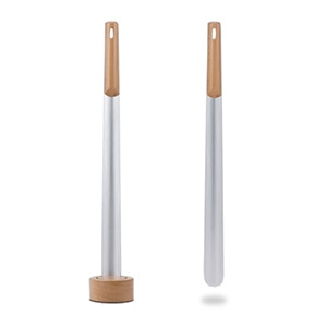 アルミとナチュラルウッドの組み合わせが美しい、スタンド式のロングタイプ靴べら。床置きがさまになるデザインです。靴べら:W45×D21×H600mm●完成品●重量:0.56kg●床設置面クッション材:EVA