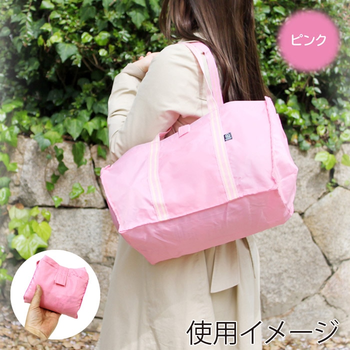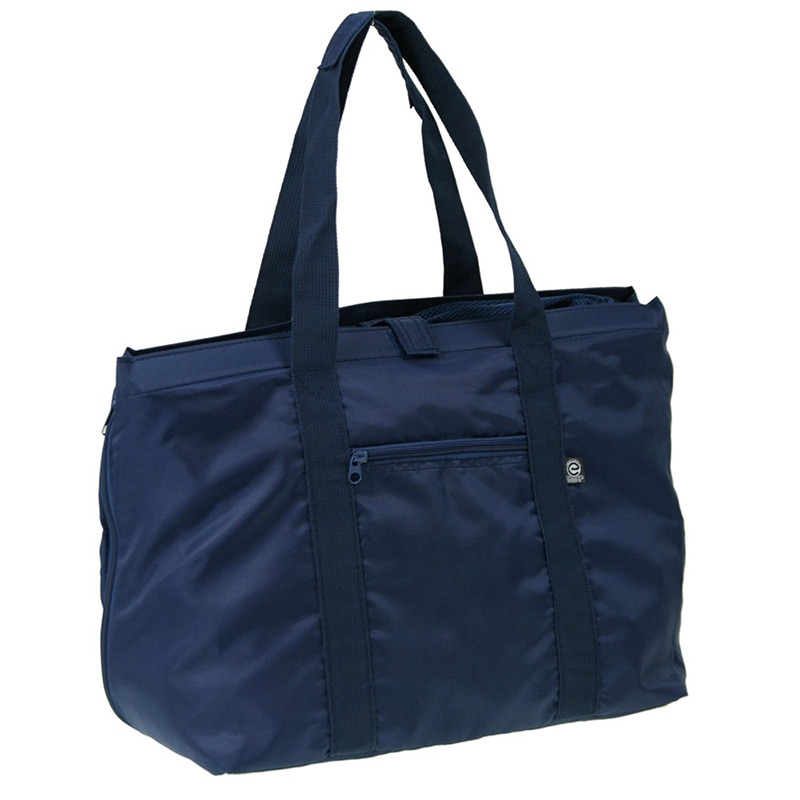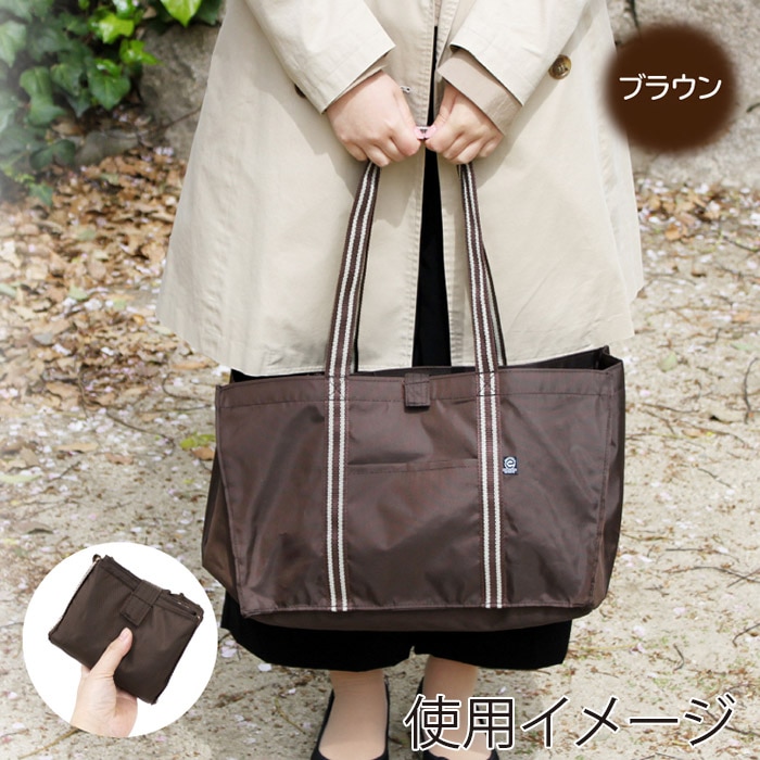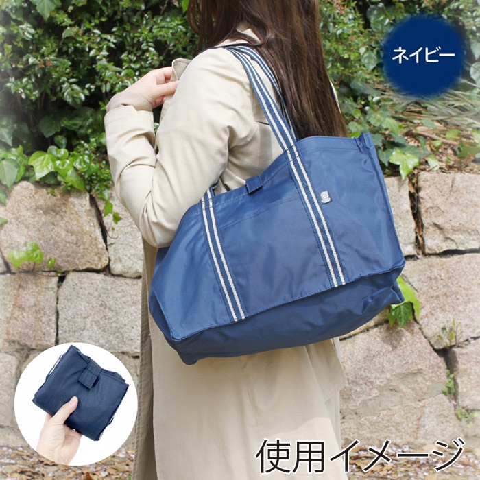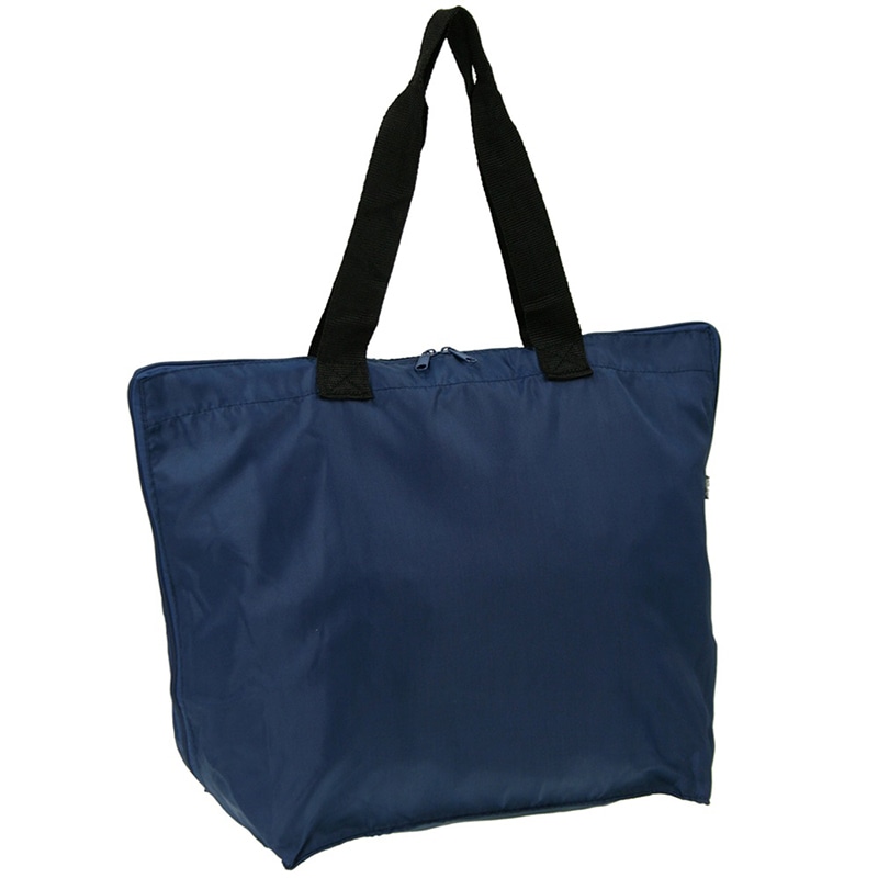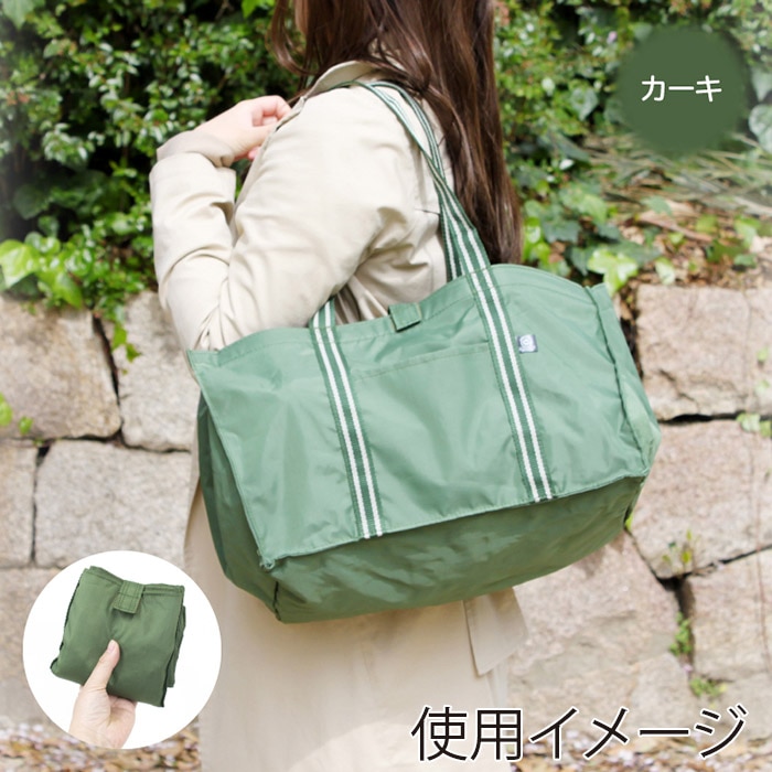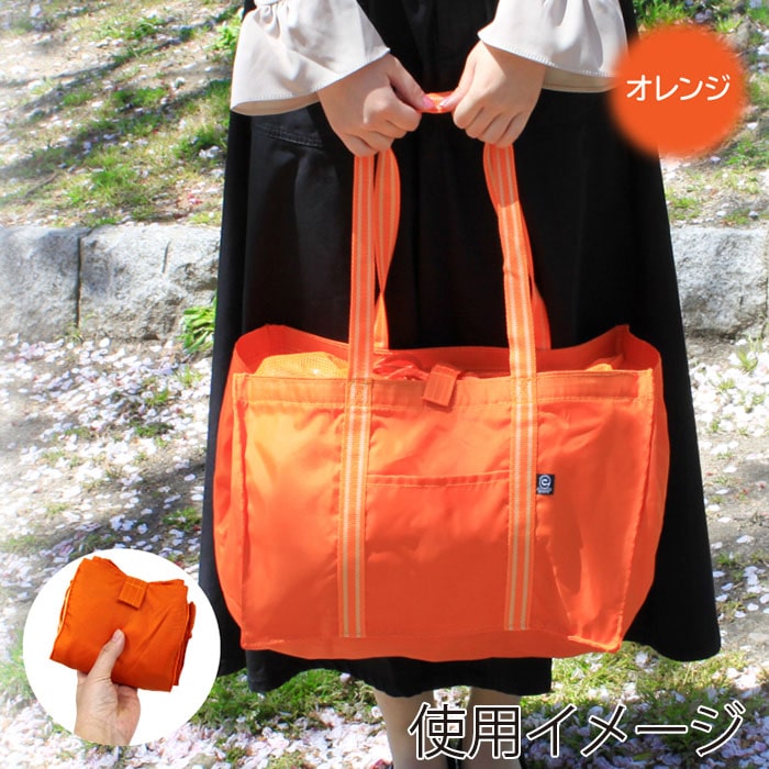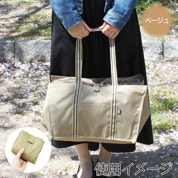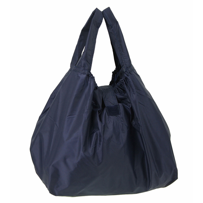 スーパーのレジカゴにかぶせて詰替えの手間を省けるバッグです。このバッグの特徴は、コンパクトにたためること!やわらかいタフタ生地を使用しており、くるくるたたんで持ち歩きも楽々です。やわらかい生地なので中の荷物が多い場合には、ちょっと形が崩れてしまうこともありますが、毎日の買い物に持ち歩きされる方にはオススメです。レジカゴバッグとしての本来の使い方はもちろん、レジャー用バッグや普段使いのトートバッグ等、大きなトートバッグとしても便利に使えます。