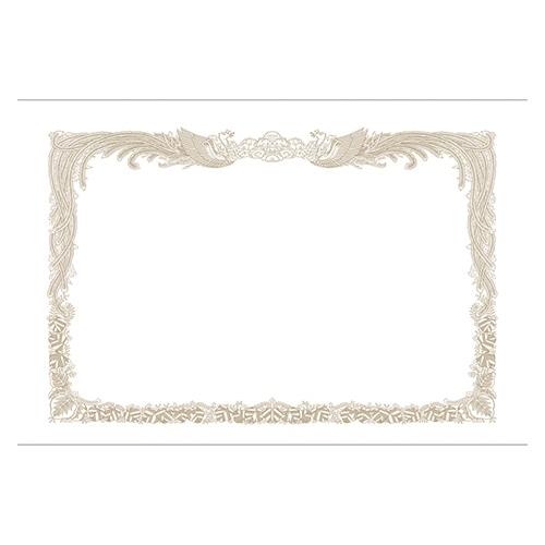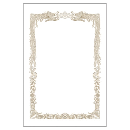 シーンにマッチする「証書用紙」 重厚感のあるゴシックなレリーフ柄。四隅にホログラム箔を施しているので、原本とコピーの判別が可能。複製防止にもおすすめです。縦横両方に使用できるデザインです。 ●表彰状、合格証書、賞状、免状、保証書、認定証などに●柄:レリーフ●サイズ:A4(縦297×横210mm)●紙厚:0.186mm●材質:ケント紙(157g/㎡)●ホログラム箔印刷/片面柄(印刷)●縦横兼用●テスト印刷用紙2枚入●対応プリンタ:インクジェット、レーザー、コピー、手書き●注文単位:1冊(5枚入)
